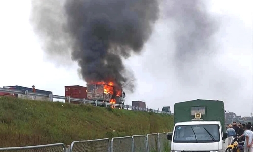 Thời điểm đó, xe tải mang biển số 29H-845.xx do anh H.V.C. (SN 1987, trú tại Hà Nội) điều khiển. Khi đang di chuyển, tài xế phát hiện khói bốc lên từ thùng xe chở hàng nên lập tức đánh lái vào làn dừng khẩn cấp và hô hoán người đi đường giúp đỡ.
